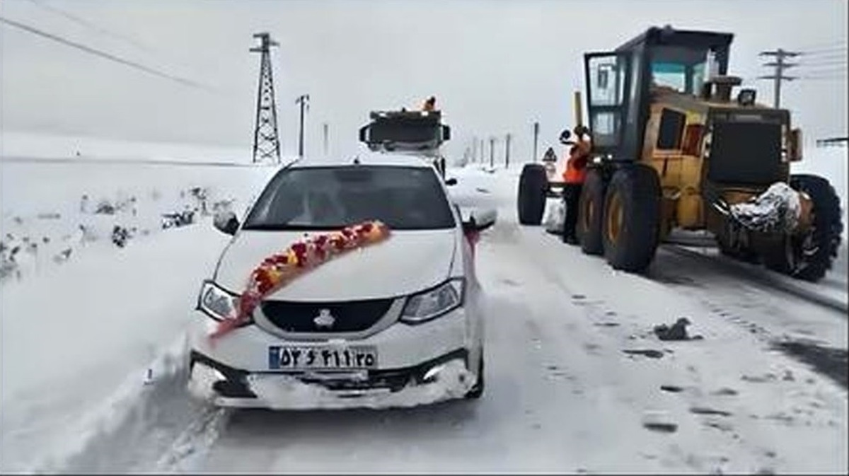 ویدئو صد آنلاین | ویدئویی از کمکرسانی به ماشین عروس و داماد گرفتار در جاده برفی در تبریز را ببینید.