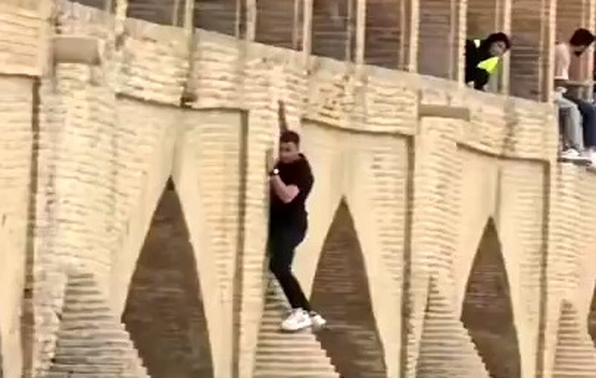 ویدئو صد آنلاین | ویدئویی از گردشگر آویزانشده از پل تاریخی سیوسهپل اصفهان با واکنش منفی کاربران فضای مجازی مواجه شده است.