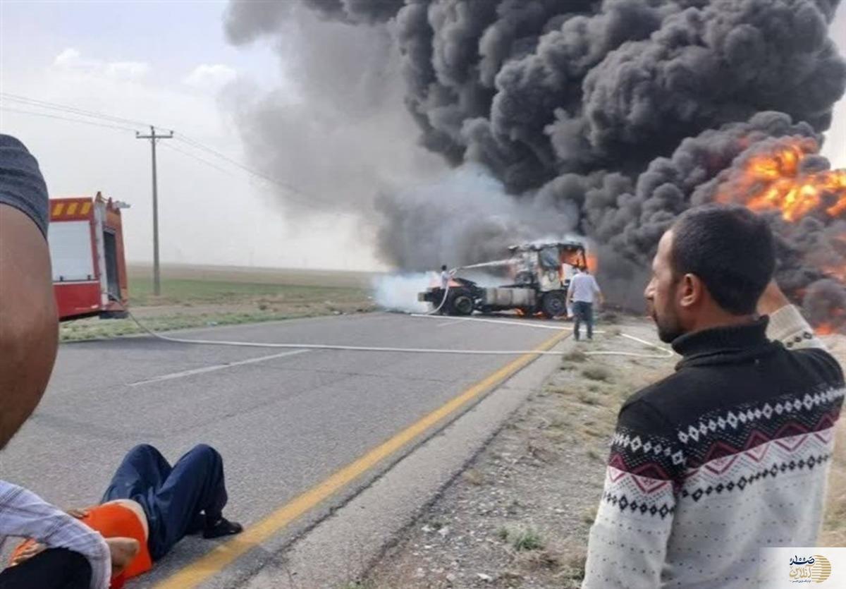 ببینید| انفجار وحشتناک تریلی حادثه ساز شد