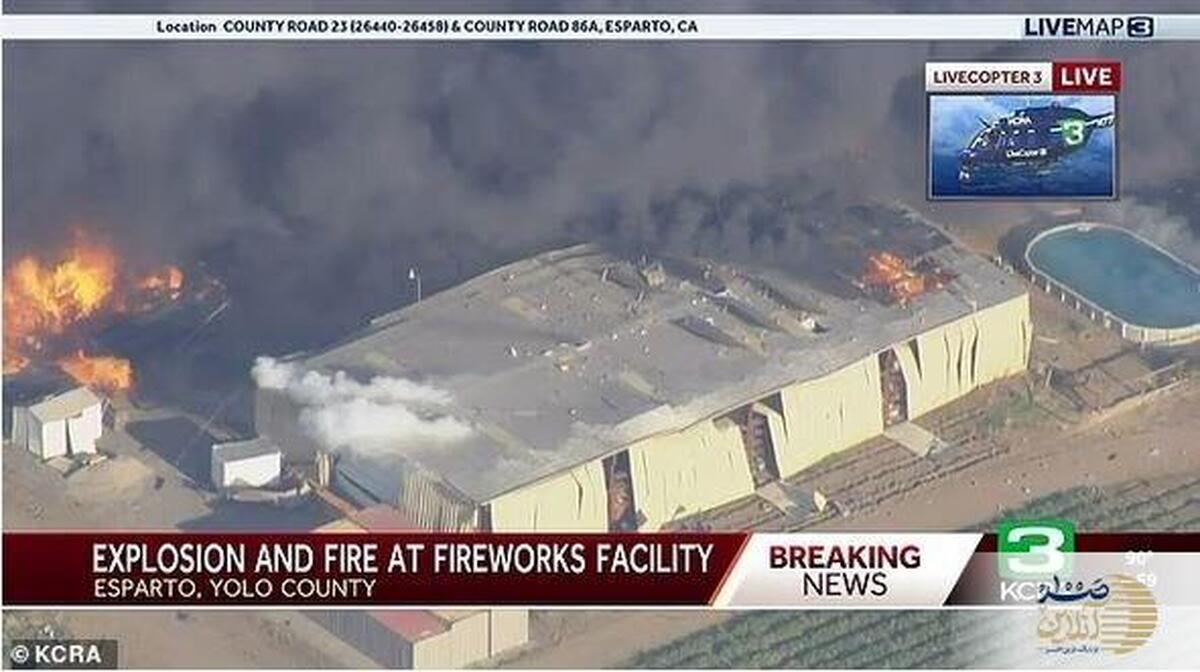 ویدیو صد آنلاین| یک انبار نگهداری مواد آتش‌بازی در کالیفرنیای آمریکا روز گذشته (سه‌شنبه) آتش گرفت و منفجر شد.
