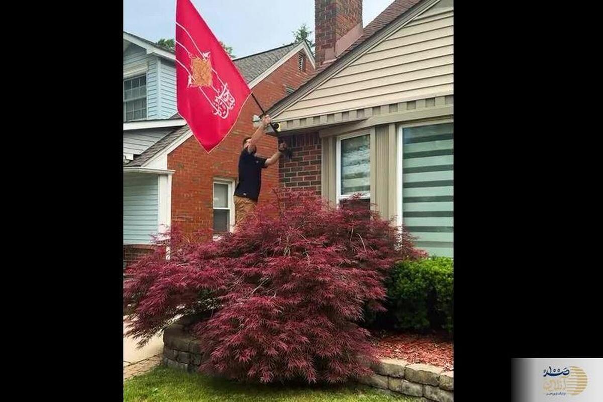 یکی از شهروندان آمریکا با برافراشتن پرچم سرخ امام حسین(ع) در یکی از ایالتها، ارادت خود را در آمریکا به اهل بیت عصمت و طهارات نشان داد