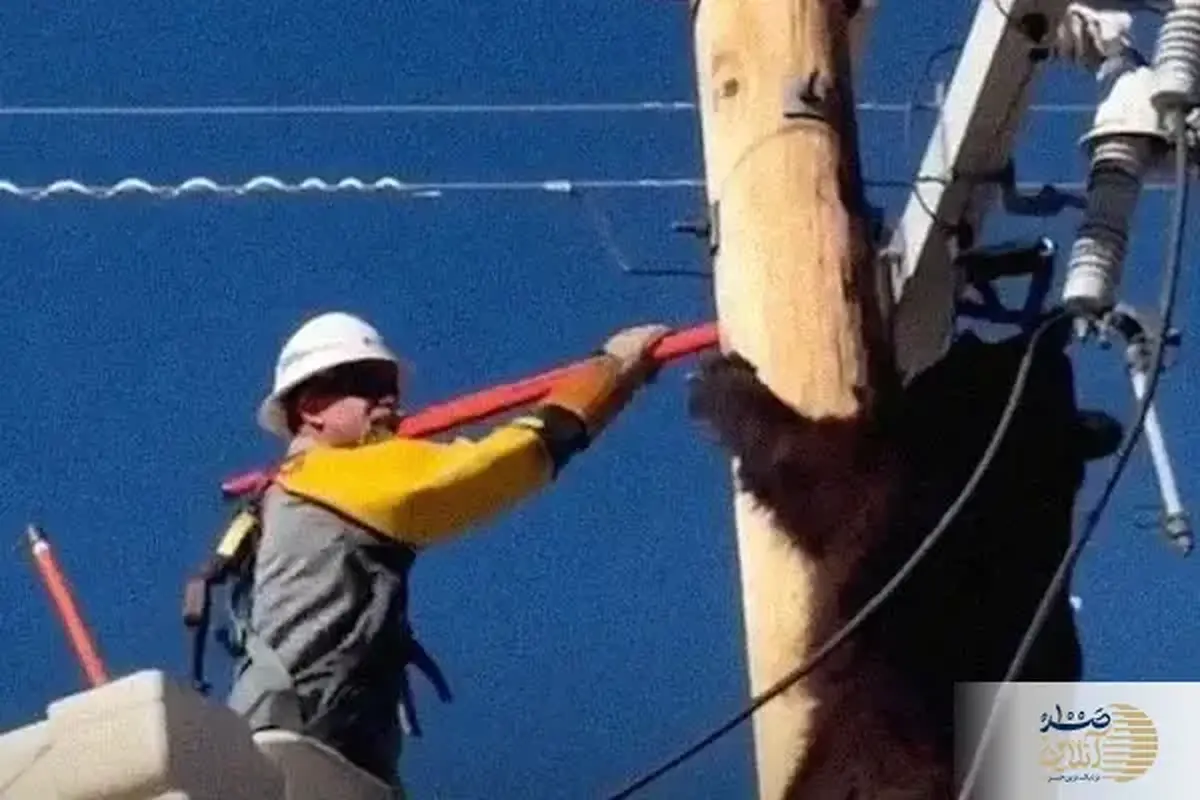ببینید/ عملیات نفسگیر برای نجات خرس از بالای تیر برق