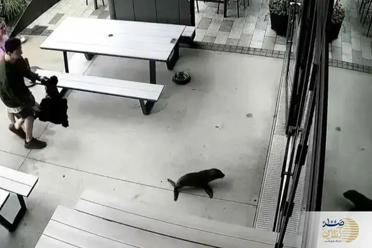ببینید/ تعقیب و گریز بامزه یک بچهفوک با پیتزا در کافه