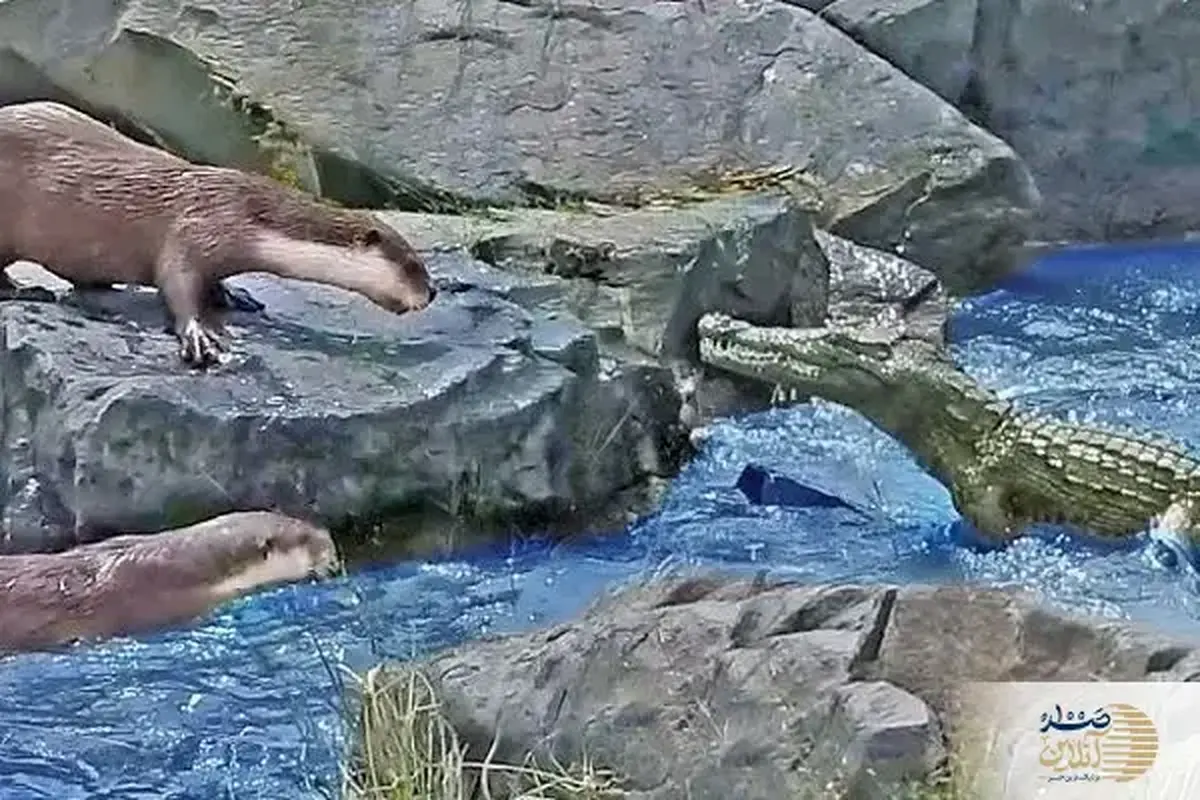 ببینید/ تصاویری از درگیری تمساح خشمگین با سمور‌ها