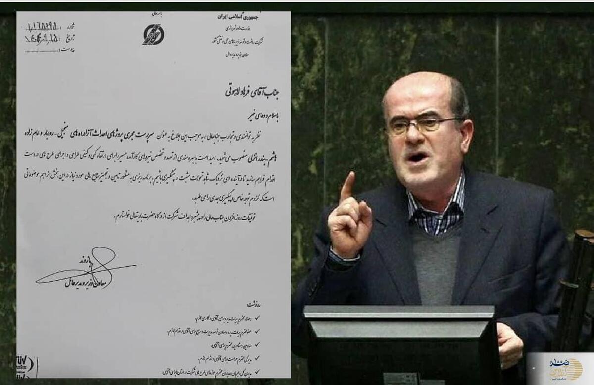 بر اساس اطلاعات رسیده، فرهاد لاهوتی، فرزند مرداد لاهوتی نماینده لنگرود در مجلس شورای اسلامی، با حکم یکی از معاونان وزیر راه و شهرسازی به سمت مدیر پروژه‌های احداث آزادراه‌های گیلان منصوب شده است؛ سمتی کلیدی در یکی از بزرگ‌ترین و پرگردش‌ترین شرکت‌های زیرمجموعه وزارت راه با گردش مالی چندصد میلیارد تومانی.