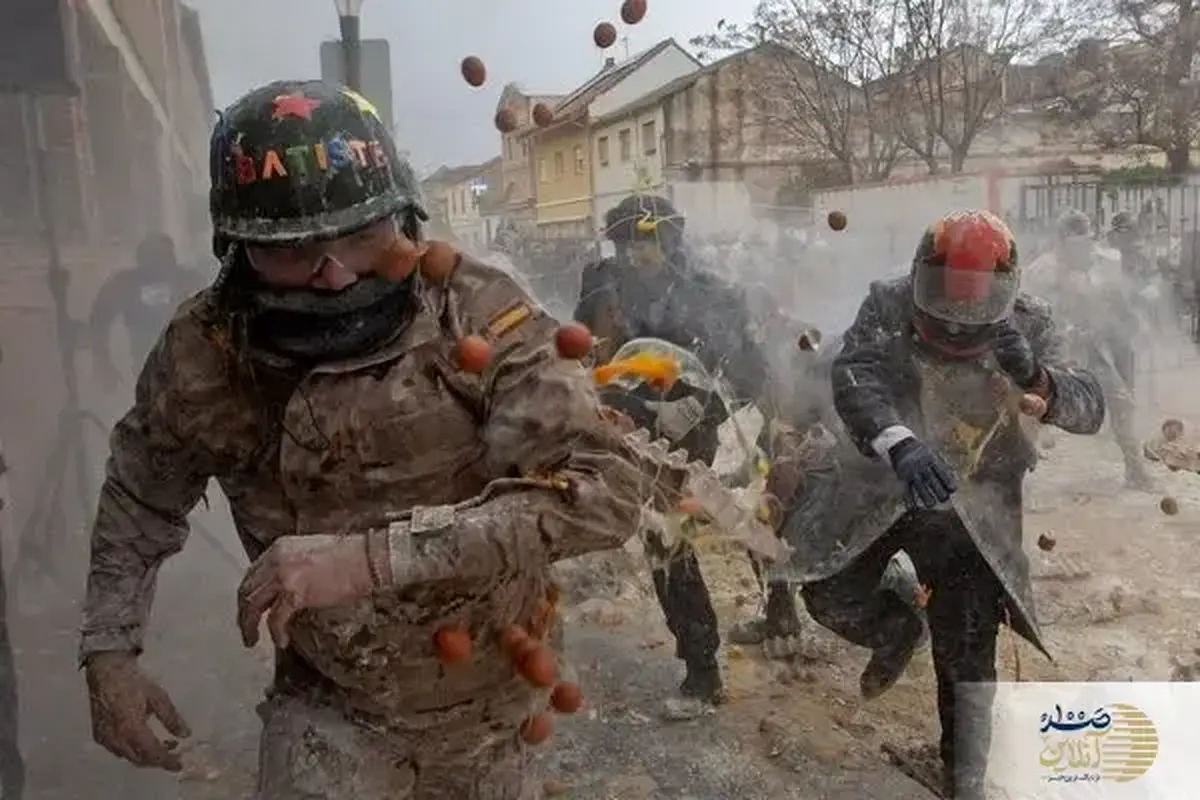جشن خیابانی «الس فاریناتس» با آرد، تخممرغ و ترقه در اسپانیا برگزار شد.