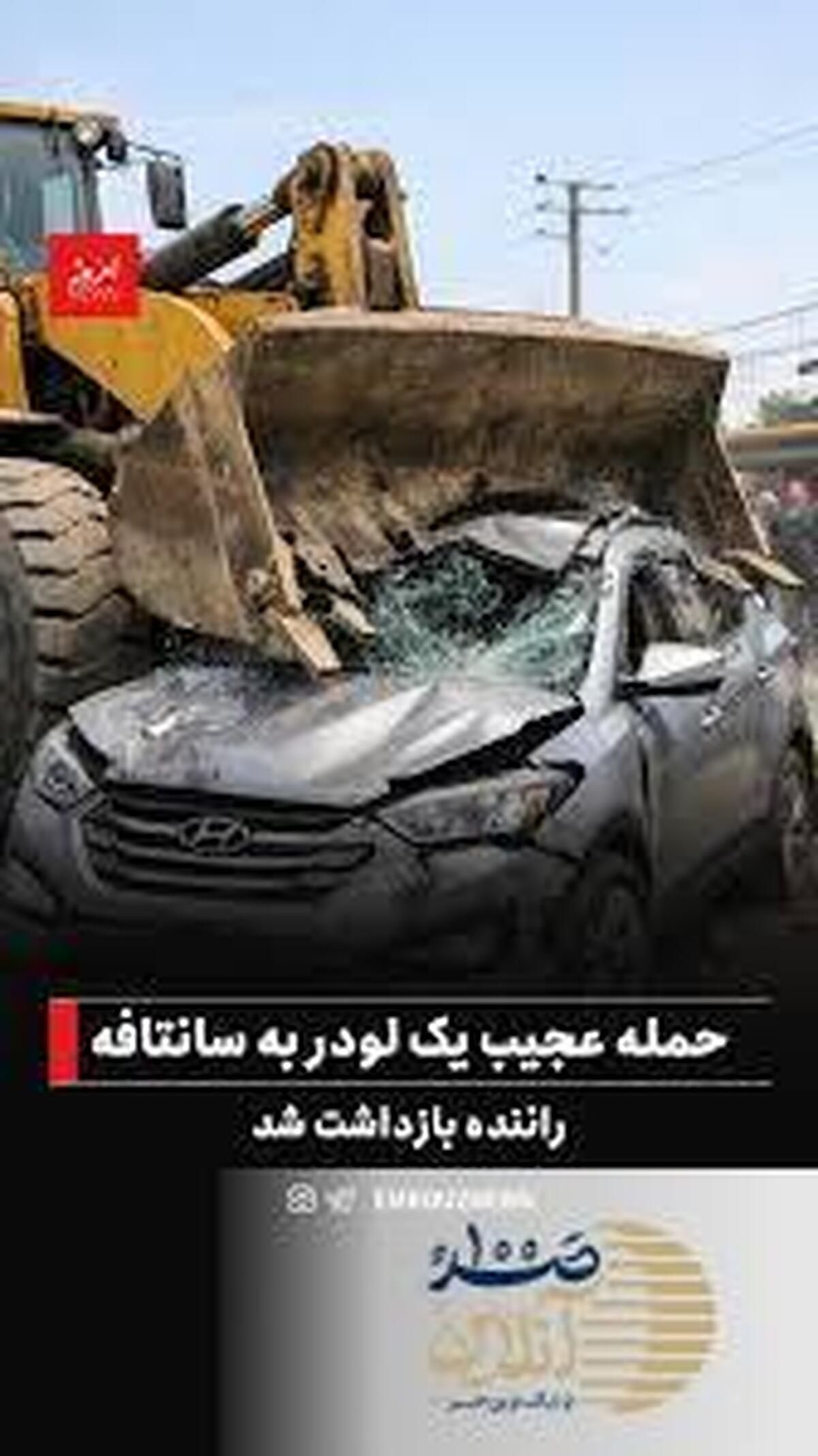 ببینید/حمله لودر به خودروی سانتافه/راننده در بازداشت