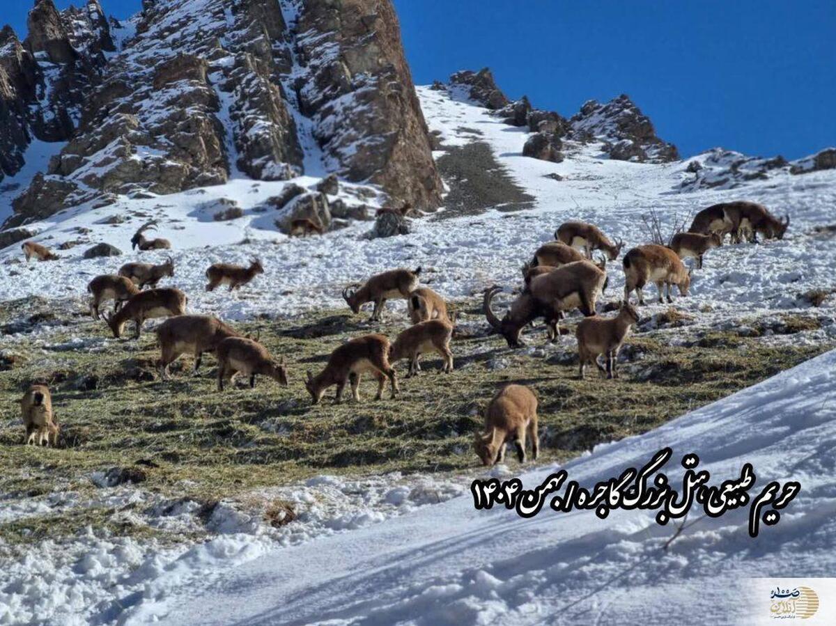 بازگشت بزهای کوهی به ارتفاعات برفی گاجره؛ روایت تصویری از زندگی کل و بز البرز در بزرگترین هتل کوهستانی کشور