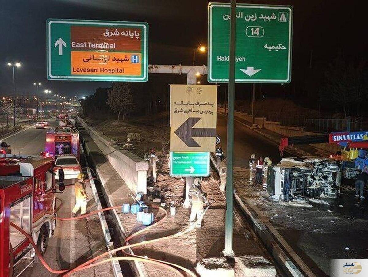به گزارش صد آنلاین ،سخنگوی سازمان آتشنشانی و خدمات ایمنی شهر تهران از واژگونی یک دستگاه کامیونت حامل بنزین در بزرگراه یاسینی خبر داد و گفت: با حضور بهموقع آتشنشانان، محل حادثه ایمنسازی و از بروز آتشسوزی جلوگیری شد.