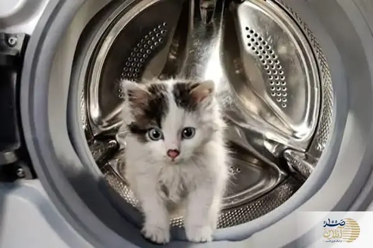 ببینید/ نجات باورنکردنی گربه از داخل ماشین لباسشویی