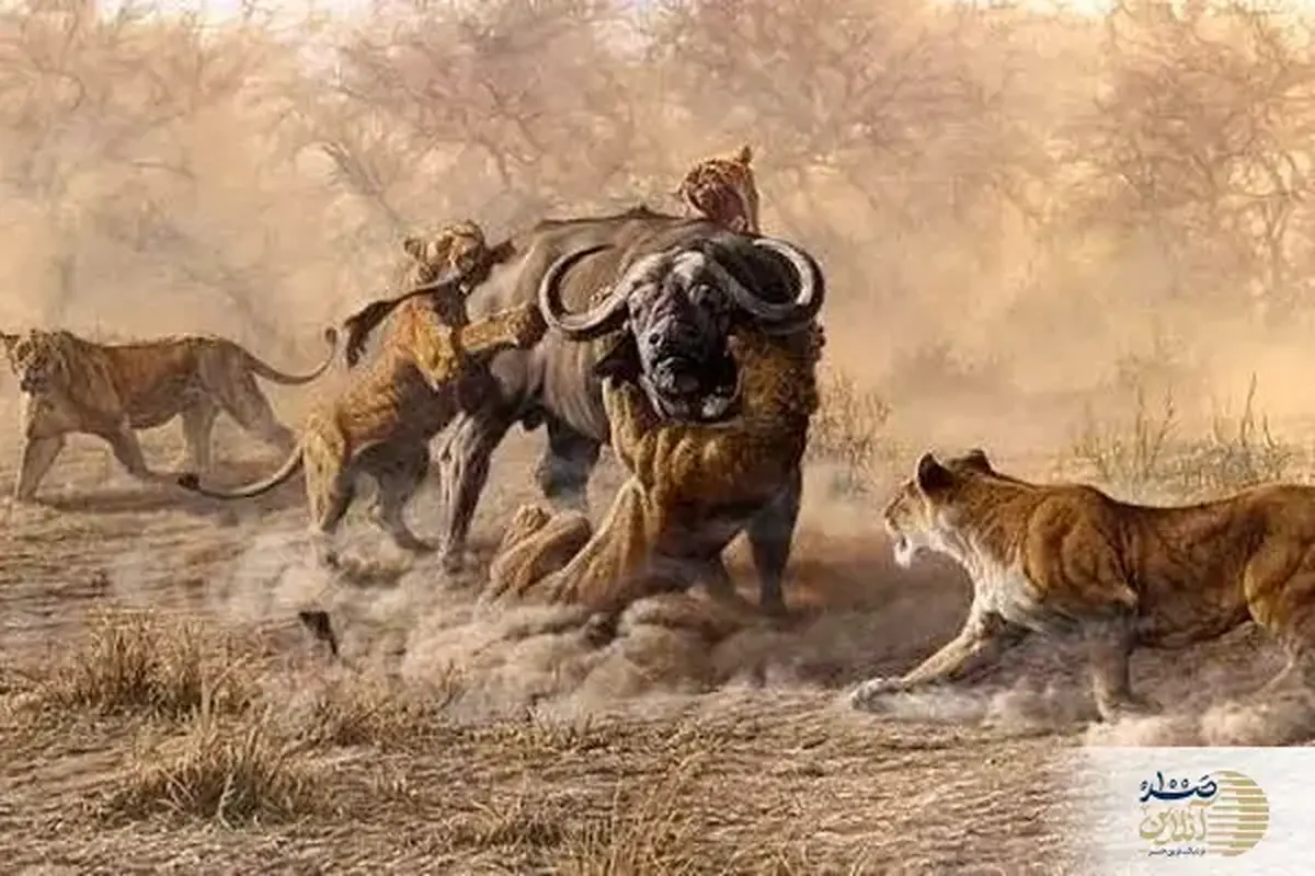 رویارویی نفسگیر شیرها و گاومیشهای وحشی در دشتهای آفریقا، صحنهای کمنظیر از نبرد برای بقا را رقم زد.