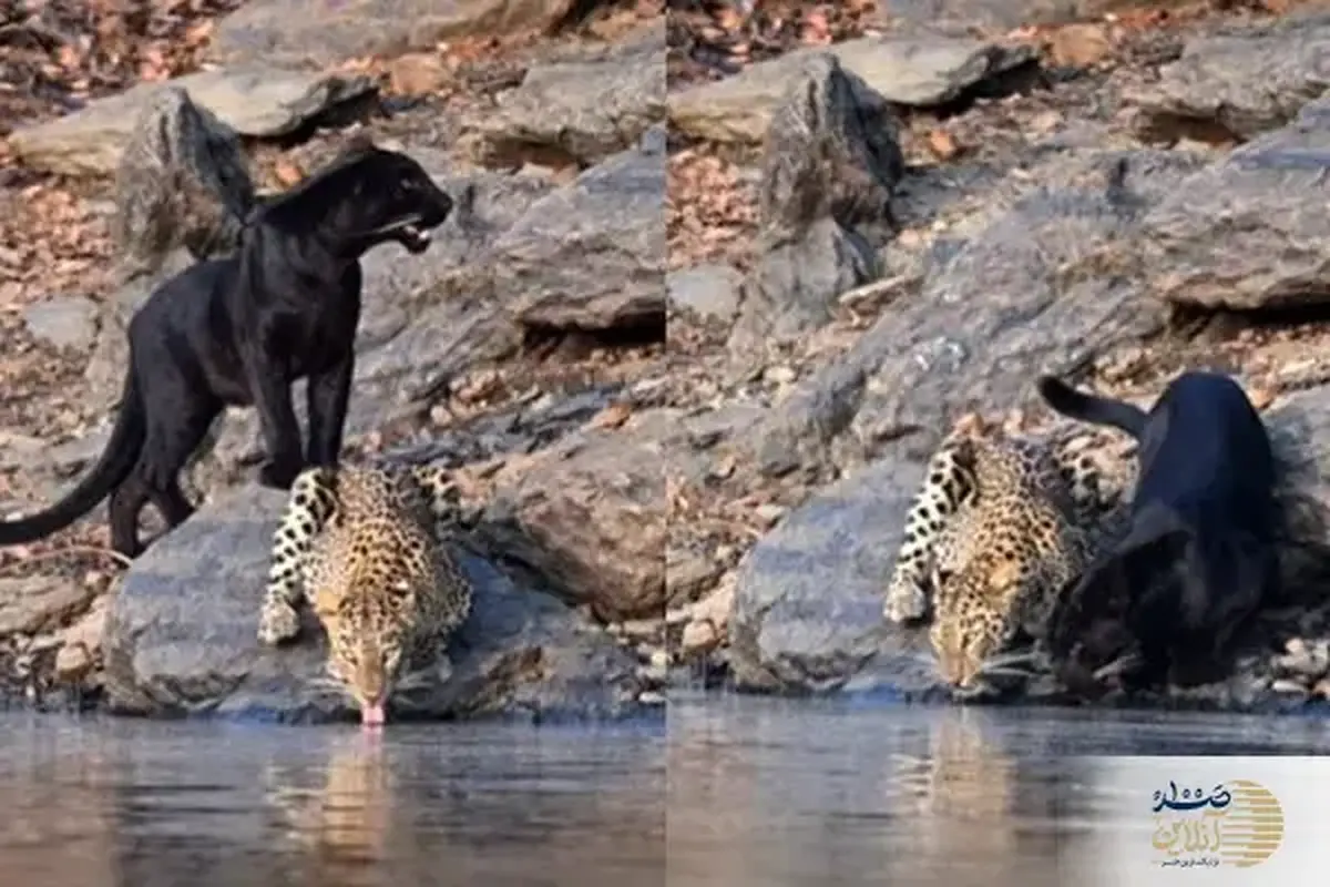 در پارک ملی بهدرا هند، تصویری کمنظیر از آرامش و همزیستی ثبت شد: یک پلنگ سیاه و یک پلنگ آسیایی در سکوت کنار هم آب مینوشند و انعکاسشان روی آب صحنهای خیرهکننده خلق کرده است.