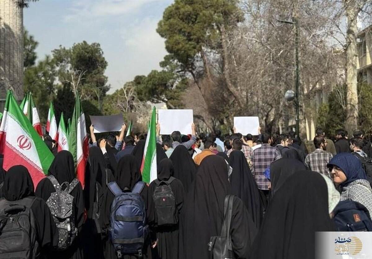 به گزارش صدآنلاین به نقل از تسنیم، امروز بهمانند روزهای گذشته تجمعات دانشجویی در برخی از دانشگاههای تهران با موضوع حوادث اخیر و محکومیت کودتای تروریستی اسرائیلی و آمریکایی در کشور برگزار شد.