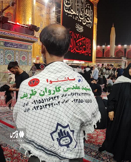 درج عبارت عربی «ناشنوا»(أصم) روی چفیه اعضای کاروان